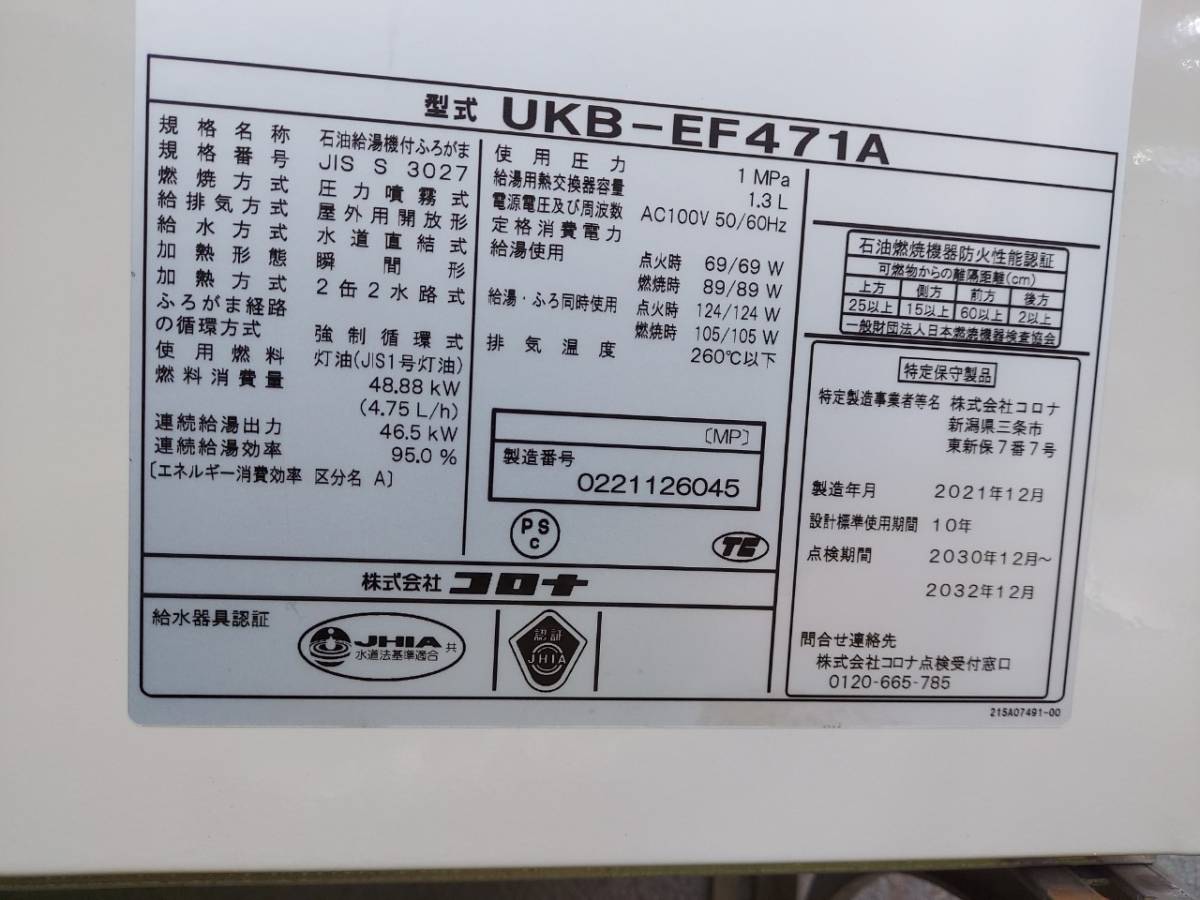 東御市 コロナ石油給湯機付ふろがまUKB-EF471A 給湯器交換工事|長野、群馬、埼玉の給湯器工事に駆け付けます。【信越給湯器】