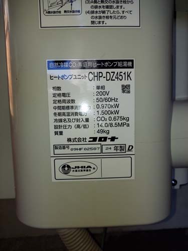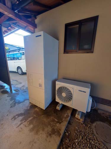 佐波郡 SANDENエコキュート→コロナ自然冷媒CO2家庭用ヒートポンプ給湯機貯湯ユニットCTU-37AZ1K、ヒートポンプユニットCHP-DZ451K エコキュート交換工事