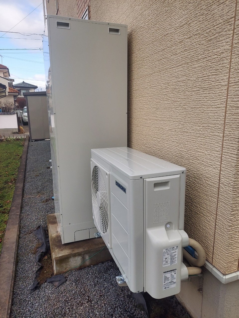 塩尻市 コロナ自然冷媒CO2家庭用ヒートポンプ給湯機ヒートポンプユニットCHP-Y454K、貯湯ユニットCTU-37AY5K エコキュート交換工事