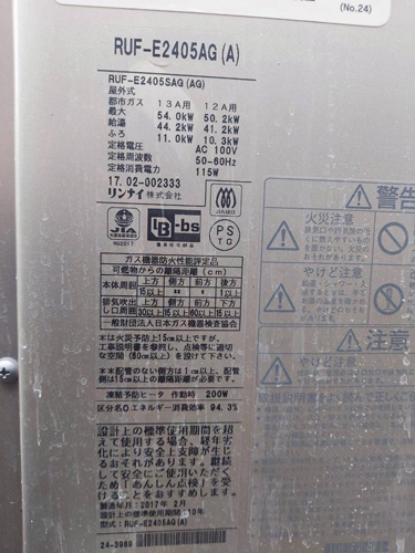 館林市赤土町 リンナイ給湯器RUF-E2405AG(A)→ノーリツ給湯器GT-2470AW 給湯器交換工事