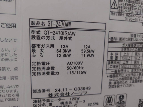 館林市赤土町 ノーリツ給湯器GT-2470AW 給湯器交換工事|長野、群馬、埼玉の給湯器工事に駆け付けます。【信越給湯器】